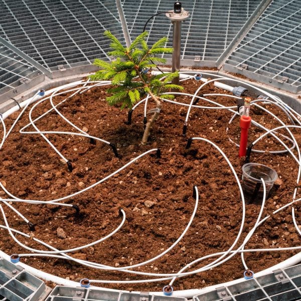 Conceptualizada por el estudio como un «microhospital a medida», la sala está diseñada para regular la luz, la temperatura, el agua, la humedad y el intercambio de gases en los árboles y operar a través de la infraestructura del hospital.