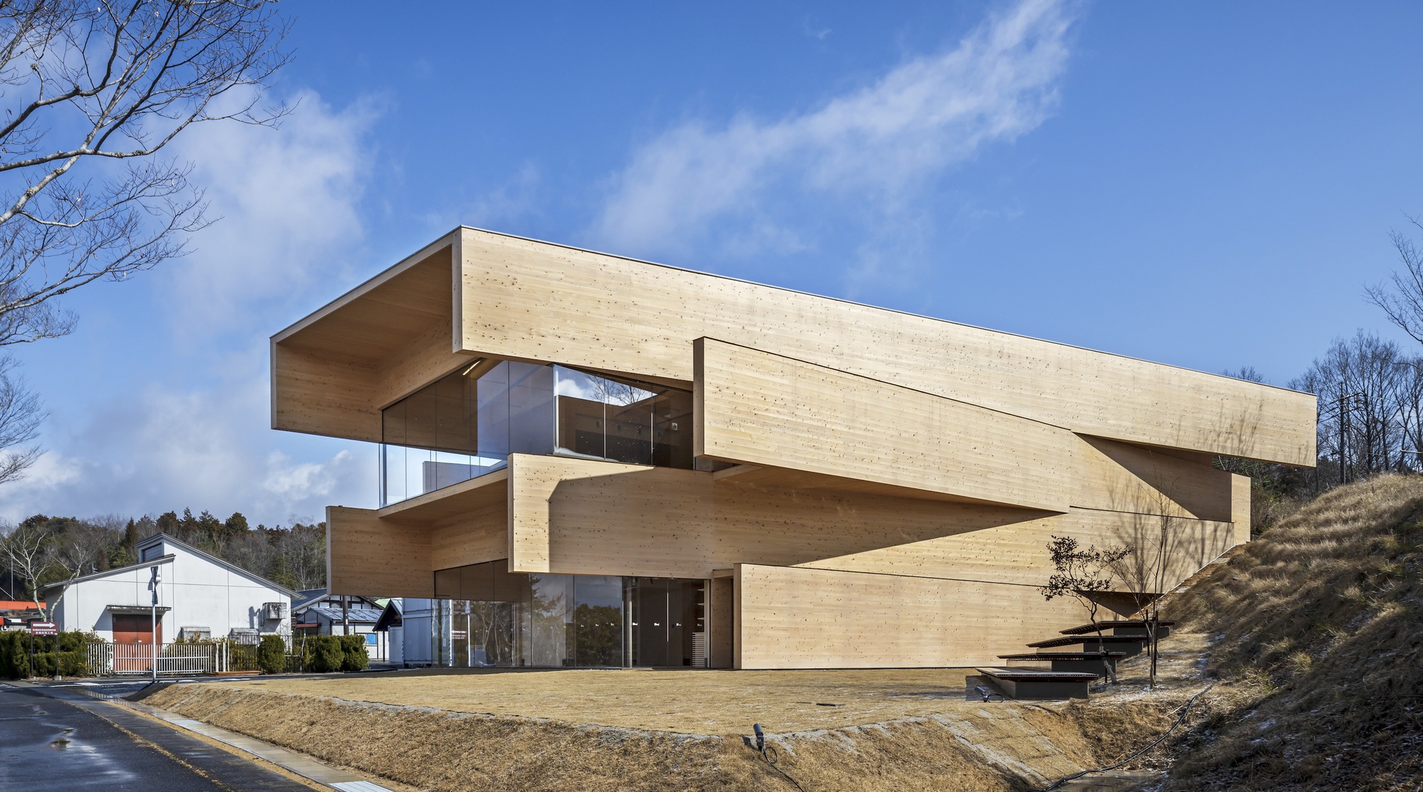 placa CLT, que Okayama es el mayor fabricante de Japón y utiliza este material en toda su estructura e interior.