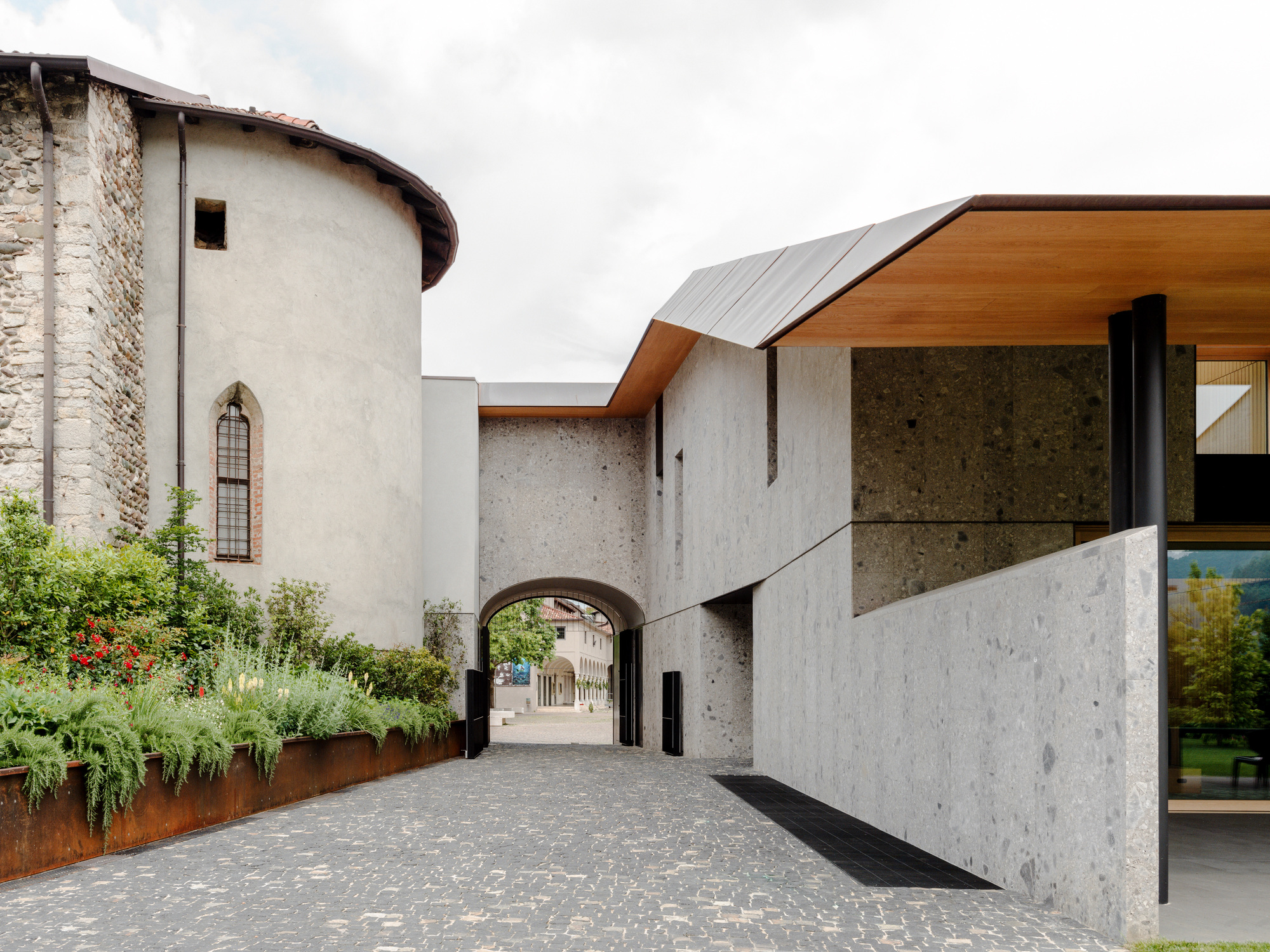 Piazza San Giuliano es la plaza principal del pueblo, frente a la iglesia del mismo nombre y al lado del nuevo edificio se encuentra la Iglesia de San Bartolomeo del siglo XIV. Este último tiene muchos frescos de Moroni del siglo XVI, lo que aumenta el encanto histórico de la zona. Para apreciar plenamente este cambio y transformación en la tipología, hay que entrar en el edificio y pasar del espacio urbano y público de la plaza al espacio íntimo y privado del jardín. Atravesando el pasaje arqueado se pasa de la fachada enlucida al lado completamente cubierto por Ceppo di Grè, que ordena las aberturas en un ritmo complejo. Esta piedra, típica del Milán moderno, fue extraída no lejos de aquí y sirve como filtro representativo en la entrada de la casa. Girando hacia el jardín se puede admirar el porche y descubrir el carácter doméstico de esta parte del edificio.