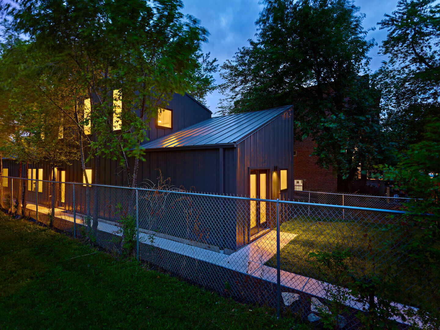 La casa dobladillo de la futura empresa (apareció anteriormente en interior) presenta estudios de casos innovadores de estos lotes. La casa de dos dormitorios está ubicada en East Garfield Park, donde el suelo está contaminado. Para resolver este problema, Future Company diseñó una casa sin sótano: Hem House se asienta sobre una losa de hormigón alejada de la calle, pero dejando un pequeño jardín. Este modelo se puede replicar fácilmente y puede verse como un precedente para revertir otros espacios abiertos.