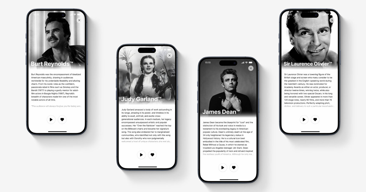 ElevenLabs da vida a través de sus largometrajes a las voces de Judy Garland, James Dean, Burt Reynolds o Sir Laurence Olivier. AI lector aplicación. Sus voces icónicas ahora pueden narrar El mago de Oz de Frank Baum, Sherlock Holmes de Sir Arthur Conan Doyle y más. La empresa de investigación de audio trabaja con los herederos de las estrellas de Hollywood para devolverlas a las pantallas digitales como narradores de inteligencia artificial. «Los herederos están emocionados de ver su legado vivo y permitir que los fanáticos los descubran de nuevas maneras». dijo la empresa.