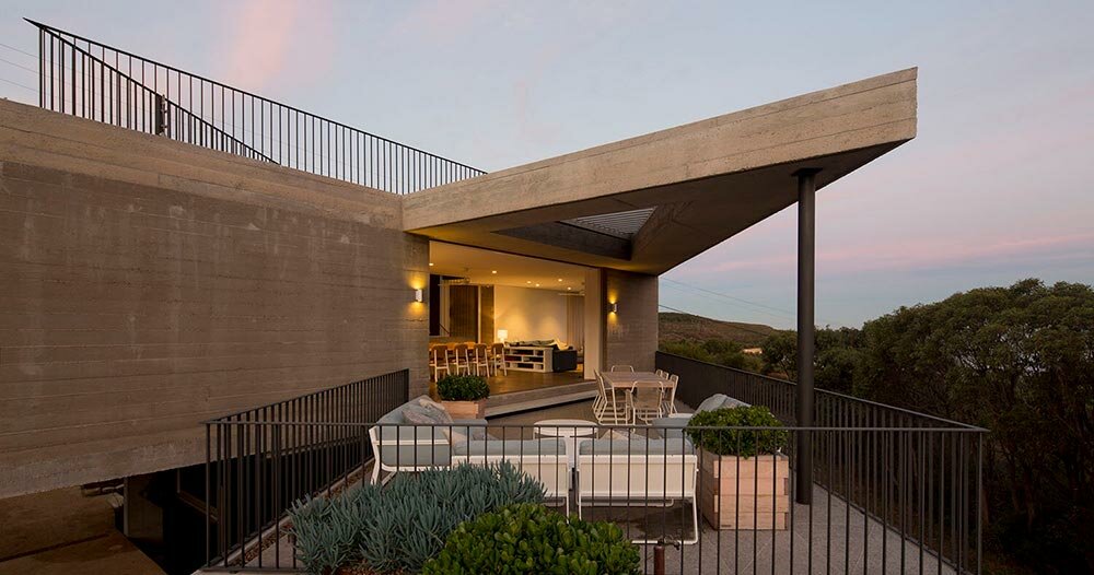 La casa está construida con hormigón sólido para resistir los duros elementos marinos y el riesgo de incendios forestales.