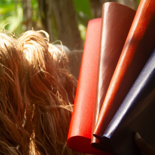 banofi (arriba y arriba) es un cuero vegetal elaborado a partir de desechos de la cosecha de plátano. Fue creado para ofrecer una alternativa vegana al cuero animal y al cuero plástico, y al mismo tiempo reciclar los desechos de los plátanos, que solo dan fruto una vez en la vida.