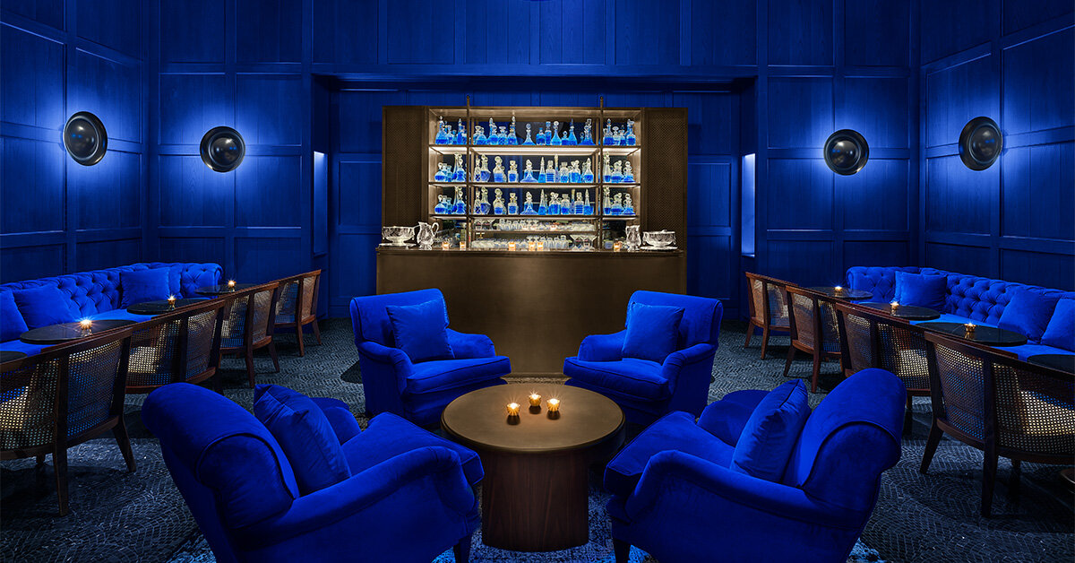 The Punch Room presenta un azul íntimo y placentero desde el suelo hasta el techo