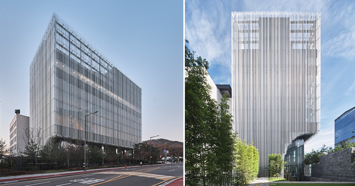 quedarse en cama Seúl/Gangnam, Audeum (Museo del Audio) Kengo Kuma Ir más allá de los conceptos tradicionales de arquitectura expositiva proporcionando una experiencia sonora única de primera mano. No sólo eso, el recién terminado museo Como herramienta para devolver al ser humano a su estado natural, permitiéndole experimentar los cinco sentidos del cuerpo. El arquitecto japonés tradujo esta visión en una fachada escultórica cubierta de superposiciones. aluminio Las lamas crean sombras cambiantes, haciéndose eco de la luz solar concentrada en el bosque. Kengo Kuma organiza las pipas al azar para armonizar el caos y el orden de la naturaleza.’Haciendo hincapié en la belleza de la luz que cambia con el clima, el tiempo y la estación», Él dijo.