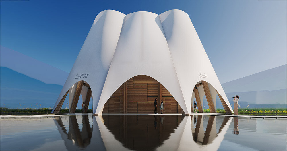 El Pabellón de Qatar de Kengo Kuma & Associates se une a la creciente lista de pabellones nacionales innovadores en la Expo 2025. Hermoso Museo de la ConvivenciaPabellón italiano de Mario Cucinella Architects, la visión de Lina Ghotmeh Pabellón Nacional del Reino de Bahréiny de estilo rural Pabellón de Arabia Saudita Diseñado por Foster + Partners: todo entretejido en un plan maestro de madera Diseñado por Sou Fujimoto.