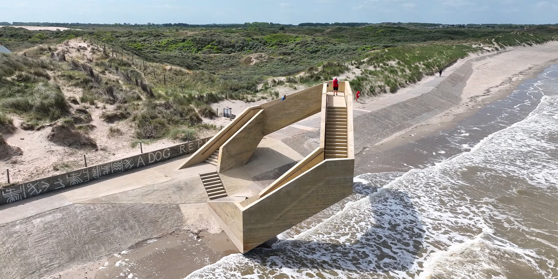Apareciendo a lo largo de la costa de De Panne, BélgicaWesterpunt de Studio MOTO fusiona agua, arena y naturaleza en una coreografía escultórica específico. Esta forma única Punto de observación Situado en las laderas del paseo marítimo local, se envuelve formando un pentágono flotante, invitando a los transeúntes a subir un tramo de escaleras. escaleras De ambos lados. ‘El mar con sus mareas, playas, dunas y paseo marítimo. Bélgica y Francia. Pájaros y caminantes. (…) ¿Cómo podemos reunir todos estos elementos y hacerlos más tangibles, sin imponerlos y perturbar el lugar? La ubicación de la torre hace que la ubicación sea un vínculo entre los diferentes elementos.«, señaló el estudio. Comparado con el anillo, el Westerpunt simboliza la conexión entre el hombre y la naturaleza o entre dos naciones.