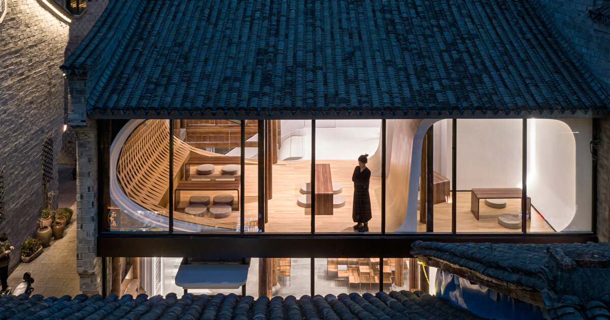 Jiangnan Zandian está ubicado en la antigua ciudad de la urna de Linhai, Taizhou, provincia de Zhejiang. Es parte del nuevo plan de propiedad intelectual de turismo cultural de «Paisaje y Poética Jiangnan». Este proyecto es una colaboración entre el Fondo de Protección y Utilización de Aldeas Antiguas de Zhejiang y la Cultura Huaxia Sheng. transformado Área moderada de 200 metros cuadrados. casa entrar a minorista comercio. El diseño combina arquitectura, interiores y mobiliario, combinando elementos históricos y modernos. El concepto de diseño está inspirado en las «olas», que simbolizan la vitalidad de la generación más joven. Los elementos ondulados abstractos contrastan con la casa antigua, creando una escena artística surrealista que refleja actitudes contemporáneas. Este concepto también se hace eco de la turbulencia real del río Lingjiang en las afueras de la ciudad de Linhai.