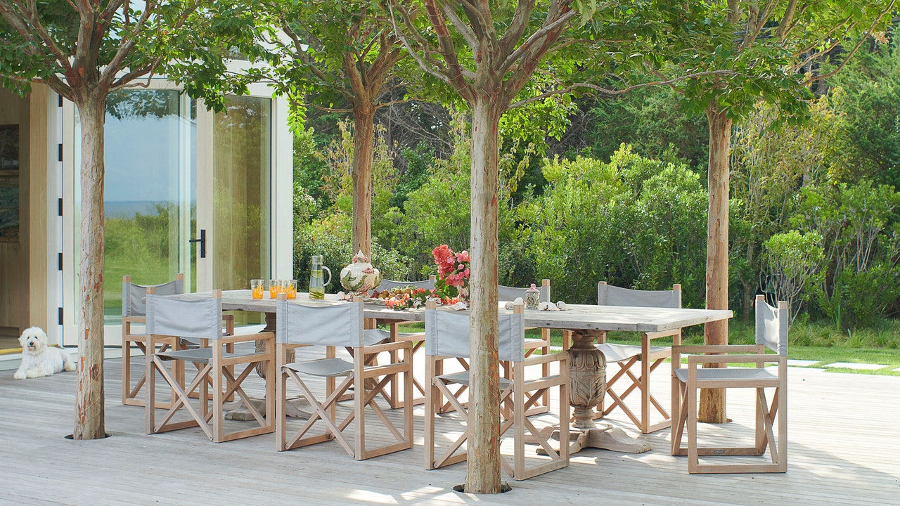 La silla del director CB2 está estacionada frente a la mesa de juego de Lulu de Kwiatkowski en su casa de las Bahamas.