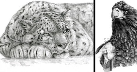 actual Encuentra dibujos a lápiz de retratos de animales, uno de acuarela uno.