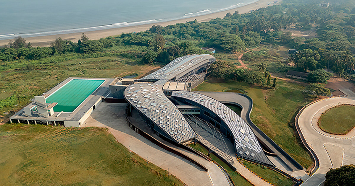 instituto nacional del agua deportivo (NIWS) en Ir adiseñado por MOFA Studio, representa la intuición y parámetro proceso de diseño para crear un lenguaje arquitectónico que sea globalmente relevante y arraigado localmente. En vista del crecimiento económico de Goa y su dependencia del mar, el gobierno creó NIWS, la organización de deportes acuáticos más grande del sudeste asiático. La iniciativa pretende normalizar y avanzar en la formación y desarrollo del turismo marítimo y los deportes de aventura en la región. El diseño del NIWS fue seleccionado a través de un concurso internacional y encarna la declaración icónica y audaz de Goa en el mapa global.