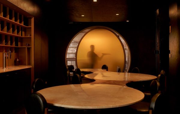 La instalación hace eco de las formaciones rocosas lunares de Milos.