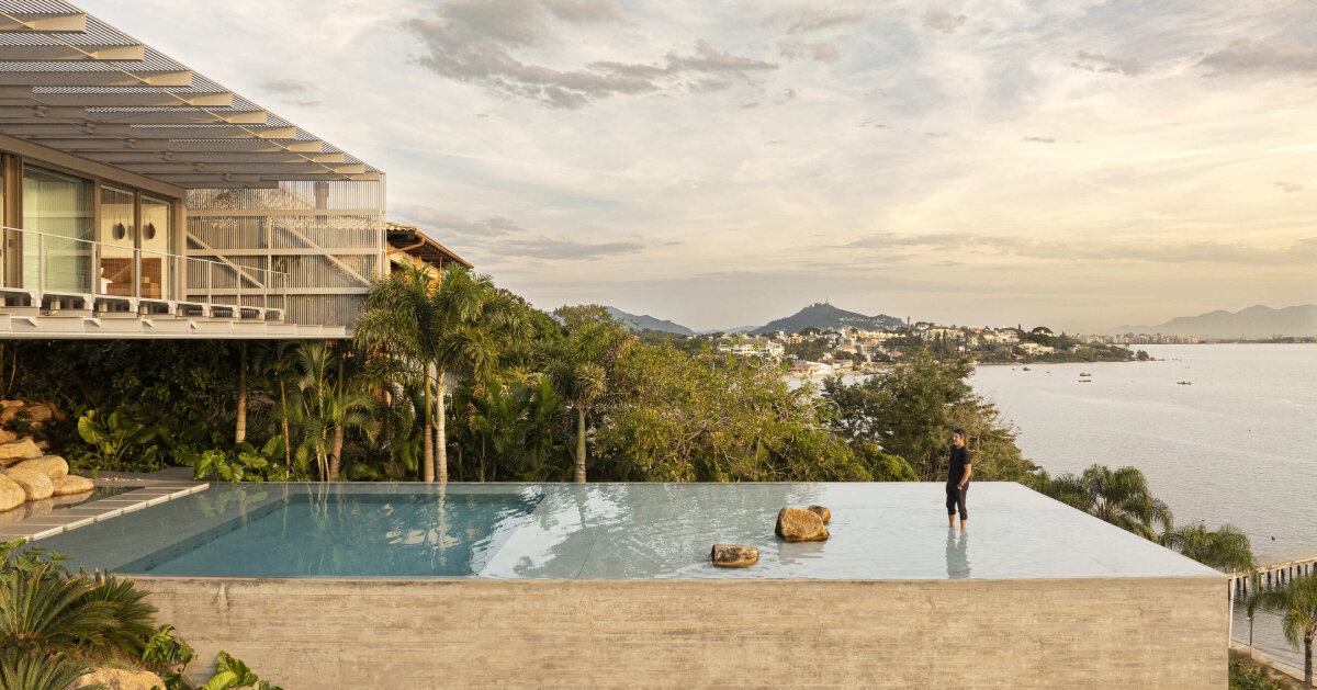 La casa ponte de Tetro se encuentra en la ladera de una colina en una isla brasileña y cuenta con una piscina infinita suspendida.