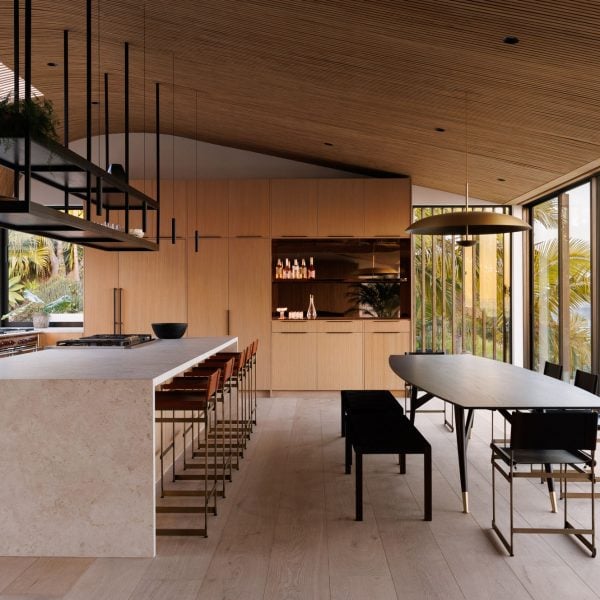 Sophie Goineau utiliza techos abovedados en su casa de Malibú para crear elementos de madera ondulantes en el techo