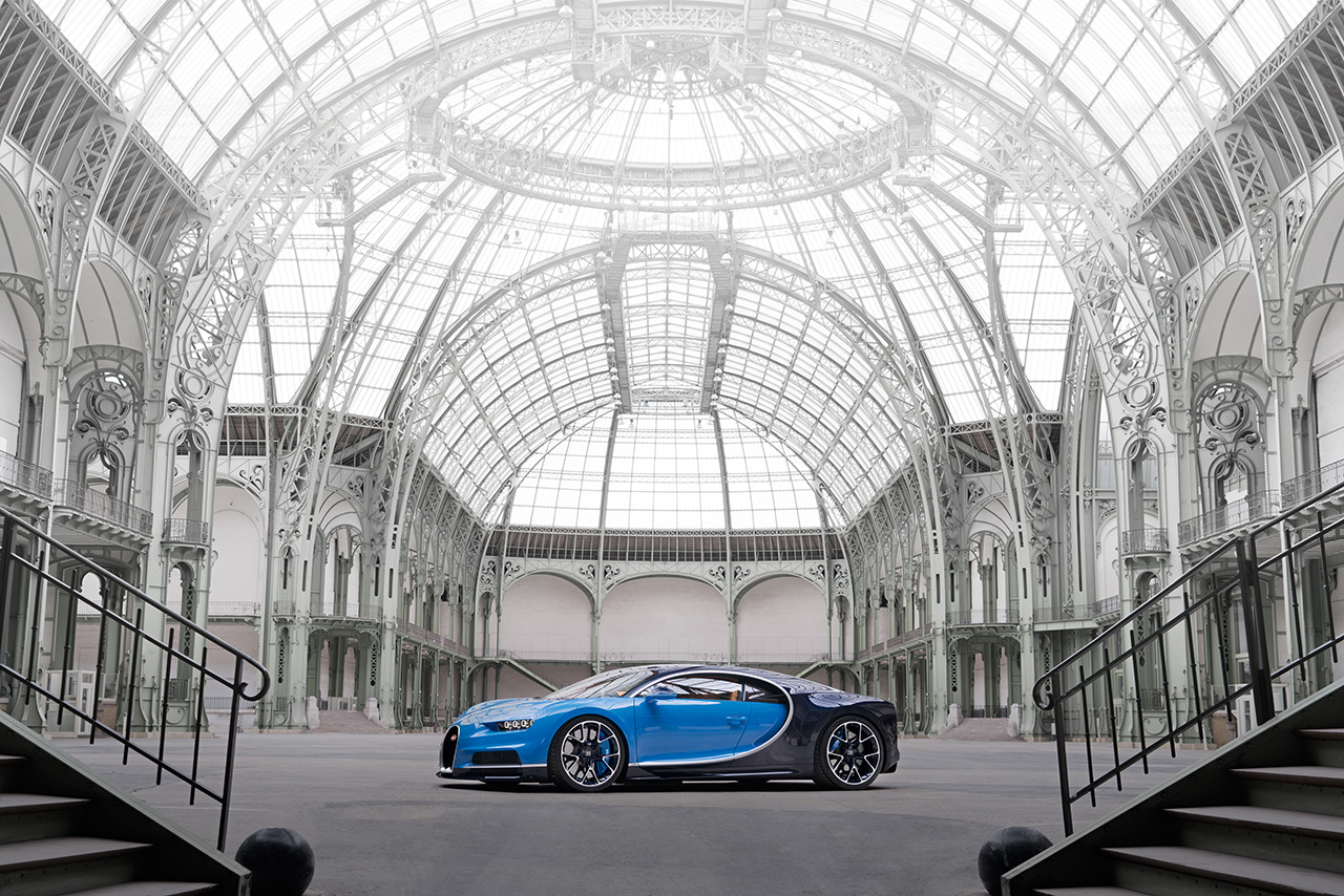 El fluido futurismo del exterior del Chiron Super Sport L’Ultime se destaca aún más por el exclusivo degradado de color de esta versión, que pasa perfectamente del «French Racing Blue» al «Atlantic Blue».
