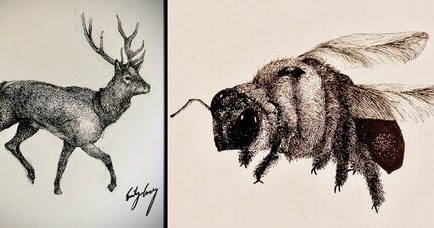 Dibujos de animales con puntos de tinta.