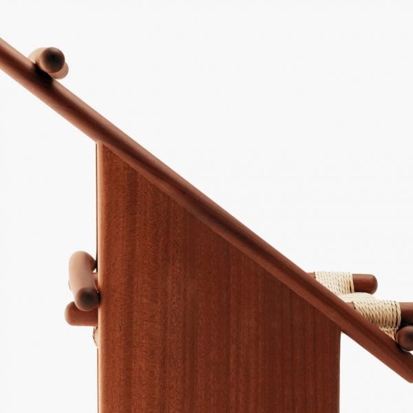 Sala de exposición Dezeen: A Silla con un madera Un marco que rinde homenaje a la tradición. Tailandia La arquitectura es uno de los seis nuevos productos que se exhiben en la sala de exposición de Dezeen.