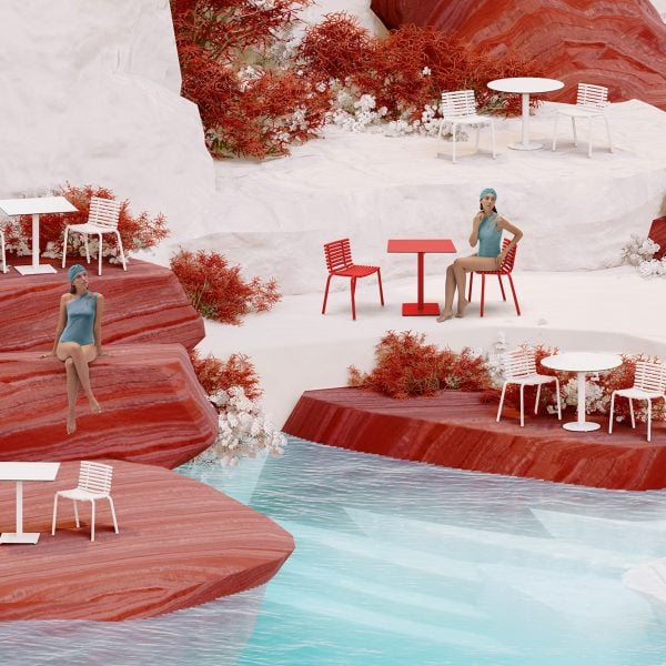 La silla Tuba está disponible en siete colores y, según la marca, el material de aluminio es infinitamente reciclable; además de funcionar bien en exteriores, la forma duradera de la silla también la hace adecuada para proyectos contract.