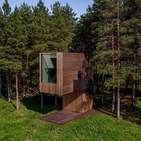 También en esta categoría se encuentran los diseños de Piil de Arseni Timofejev. arseniuroviga voladiza Casa de vacaciones de madera y acero en Estonia Según la marca, combina sostenibilidad medioambiental y funcionalidad.