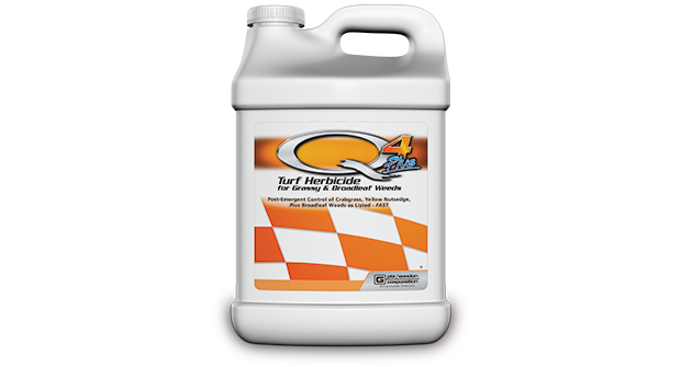 Temporada 4® El herbicida para césped Plus de PBI-Gordon para malezas graminosas y de hoja ancha combina cuatro poderosos ingredientes activos en una fórmula para matar el pasto cangrejo y otras malezas herbáceas y de hoja ancha rebeldes, incluidas la juncia amarilla, la cola de zorra, la pamplina, el trébol y el diente de león. Q4 Plus es un herbicida «todo en uno» de amplio espectro que reduce la necesidad de mezclar en tanque, lo que ayuda a reducir los costos de mano de obra.