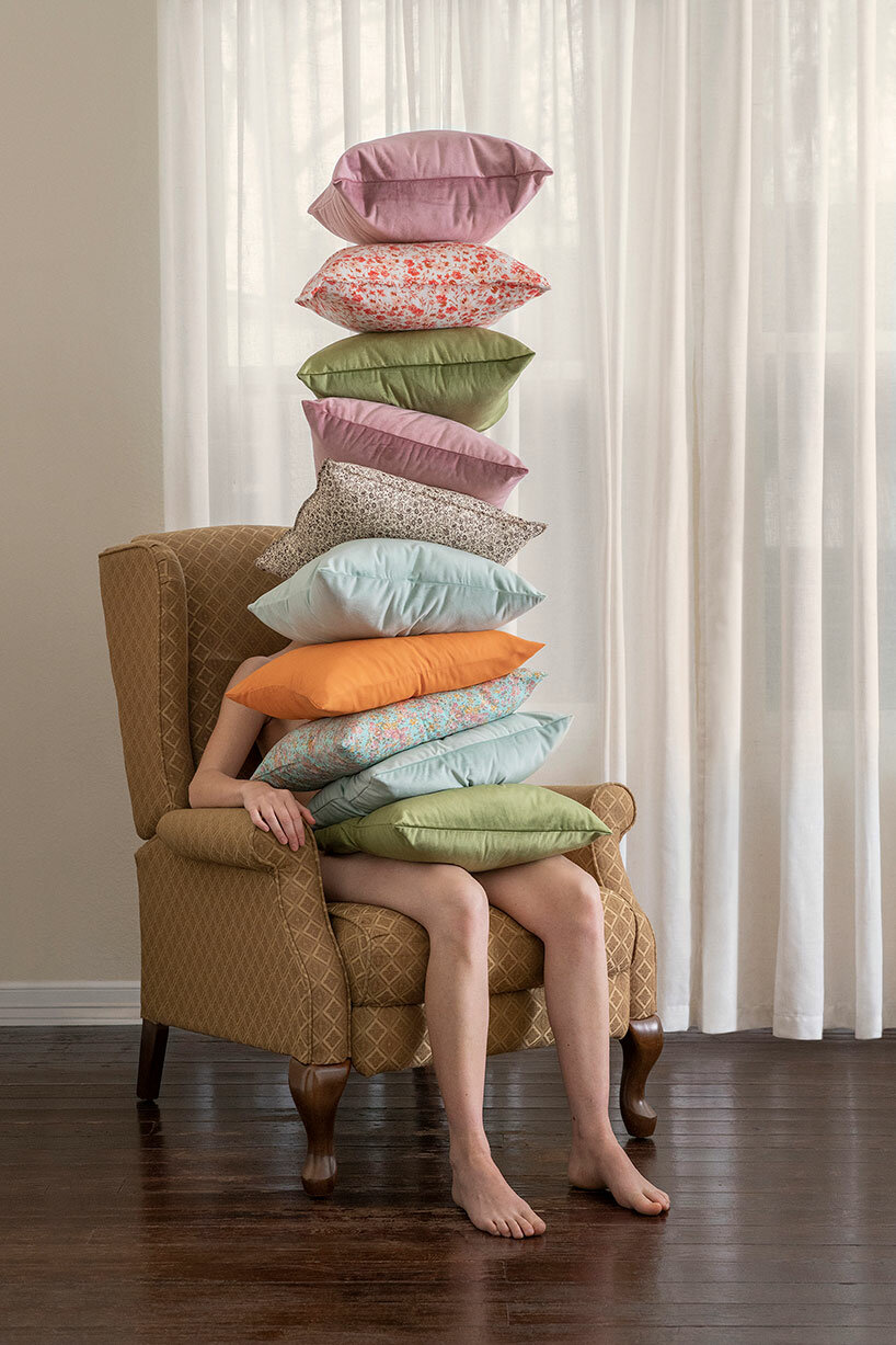 Dos piernas colgando de la ventana, ya sea invadiendo o escapando. En las casas suburbanas de colores pastel, las flores florecen en los sillones y las cómodas, y las hojas cubren las camas y los auriculares del teléfono. Una cabeza se mete en una casa de muñecas, un cuerpo se pliega en una chimenea, se posa en las aspas de un ventilador de techo y se instala entre la vajilla de un mueble de cocina. Estas escenas surrealistas y más provienen del último libro de fotografía de Brooke DiDonato, Take a Picture and It Lasts Longer. Inspirándose en su familia de Ohio, la artista visual captura imágenes que evocan una sensación de nostalgia y desorientación, con el trabajo final oscilando entre la familiaridad y la fantasía.