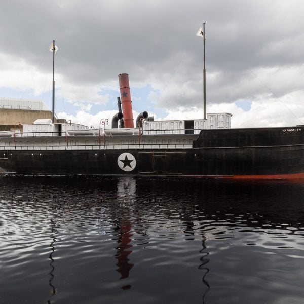 La réplica del barco se ha colocado para hacer eco del tema de la exposición de Strachan y actualmente se exhibe en la galería.