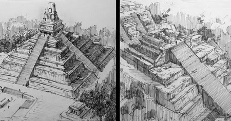 arquitectura Imágenes de la colección de dibujos a tinta de templos mayas, japonés Castillos y edificios Art Déco.