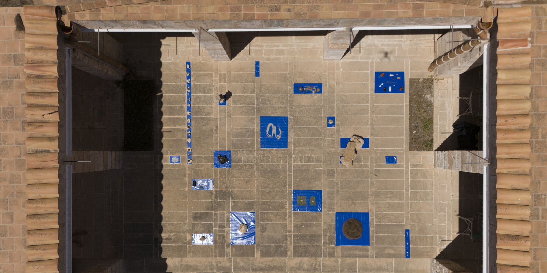 Este descubrimiento subraya la importancia del arte del detalle, haciéndose eco de los objetivos del proyecto: explorar nuevas perspectivas a través de colecciones cuidadosamente seleccionadas, crear una nueva visión en Can Lis y transformarla en una exploración y diálogo. Un espacio para la colaboración artística. En el patio central, Palma creó una exhibición de cuadrados y líneas de color azul brillante que se extienden para acomodar baldosas de varios tamaños, como un rompecabezas.