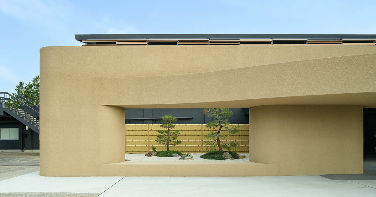 Kubotsushima Architects esculpe una fachada curva y terrosa para la renovación del club de golf japonés