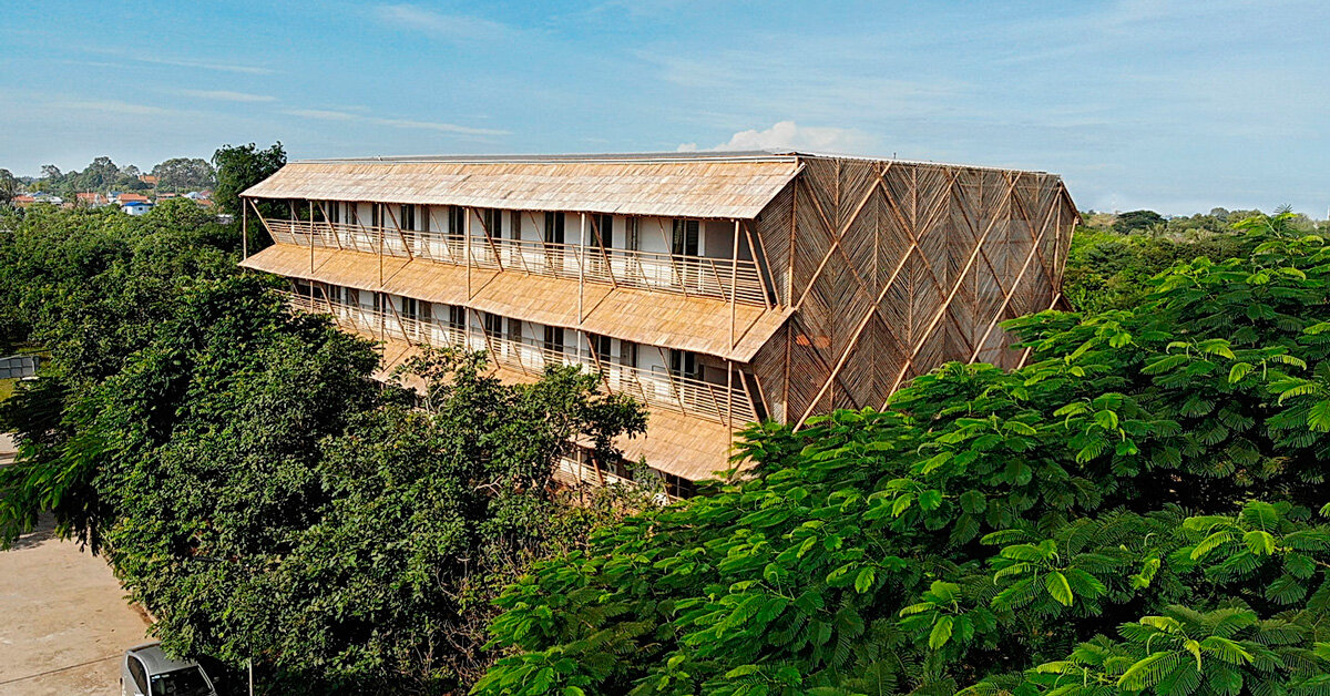 Diseñador: arquitectura floreciente 2021 Internado de la ONG Takhmau Camboya Promover la educación de las niñas. La estructura incorpora robusta específico Tiene un esqueleto orgánico y liviano. bambú piel, brindando privacidad y filtrando la luz solar tropical.