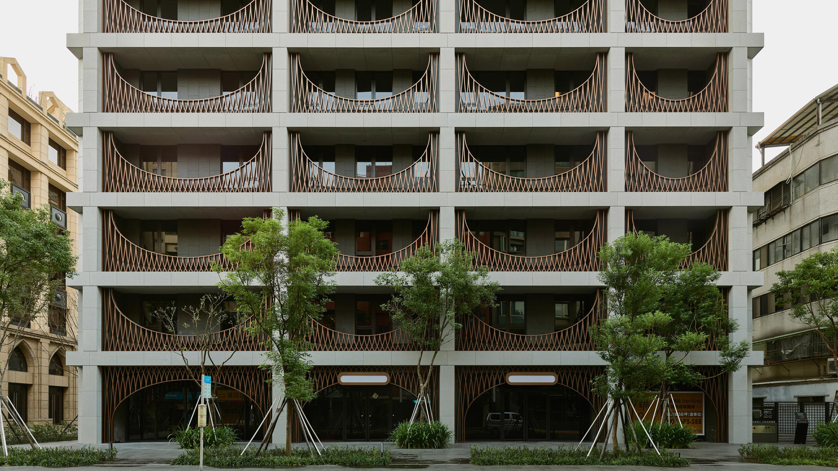 Neri&Hu dan vida al edificio de apartamentos en cuadrícula de Taipei con mamparas arqueadas