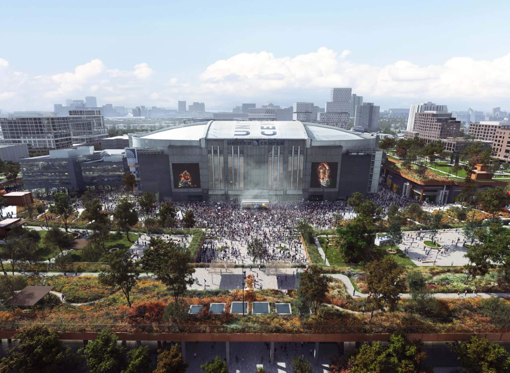 Los propietarios del United Center han presentado un proyecto de desarrollo de siete fases por valor de 7 mil millones de dólares que transformará completamente los 55 acres que rodean el estadio. Conocido por el «impacto del nuevo desarrollo», el proyecto de 1901, que lleva el nombre de la dirección del estadio en Madison Street, fue diseñado para chicagoHay más espacios verdes, espacios de uso mixto y nuevas oportunidades de empleo en el West End. colectivo de diseño Ríos servirán como planificadores maestros, mientras que el diseño del paisaje estará a cargo de Trabajo en sitio.