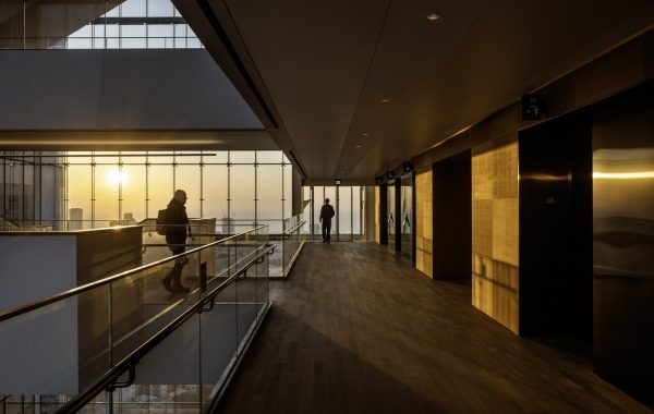 El interior presenta curvas suaves y materiales naturales, inspirados en el palacio gótico de Rudolf Steiner.