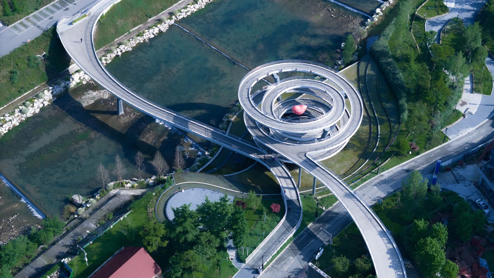ZZHK Architects completa el puente G Clef con una plataforma de observación en espiral en China