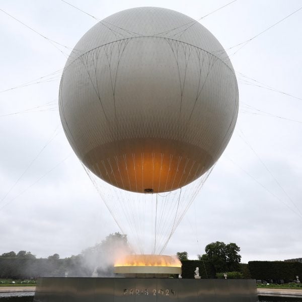 Este caldero de 30 metros de altura se inspira en el diseño de un globo aerostático tradicional, con un anillo de fuego de 7 metros de diámetro en la parte inferior. Incendiados por los deportistas Mari José Perec y Teddy Riina el viernes Lanzamiento de los Juegos Olímpicos de París 2024.