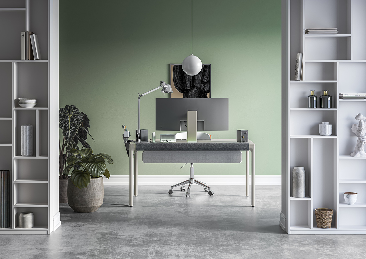 Las opciones de superficie incluyen roble o nogal de origen sostenible en chapas de roble, blanco o gris resistentes a rayones y derrames, en lugar de optar por MDF o chapa, alternativas comunes de madera maciza que se encuentran en muchos productos hoy en día. Esta sensación de calidad de construcción y confiabilidad está respaldada por una generosa garantía de 15 años. Complementando la parte superior hay un par de patas de aleación de metal con recubrimiento en polvo en colores que van del negro al cachemira, del gris frío al crema. Otros detalles incluyen controles táctiles de pantalla OLED empotrados, conductos de cables incorporados y cables de alimentación integrados en las patas, que ocultan componentes antiestéticos pero necesarios en un espacio de trabajo cableado para una interfaz sin esfuerzo.