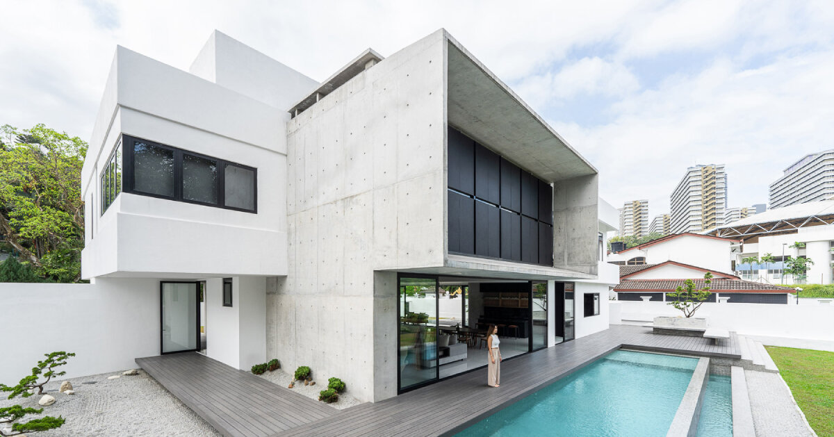 La casa de hormigón de Fabian Tan en Kuala Lumpur tiene enormes paredes con persianas que desdibujan el umbral