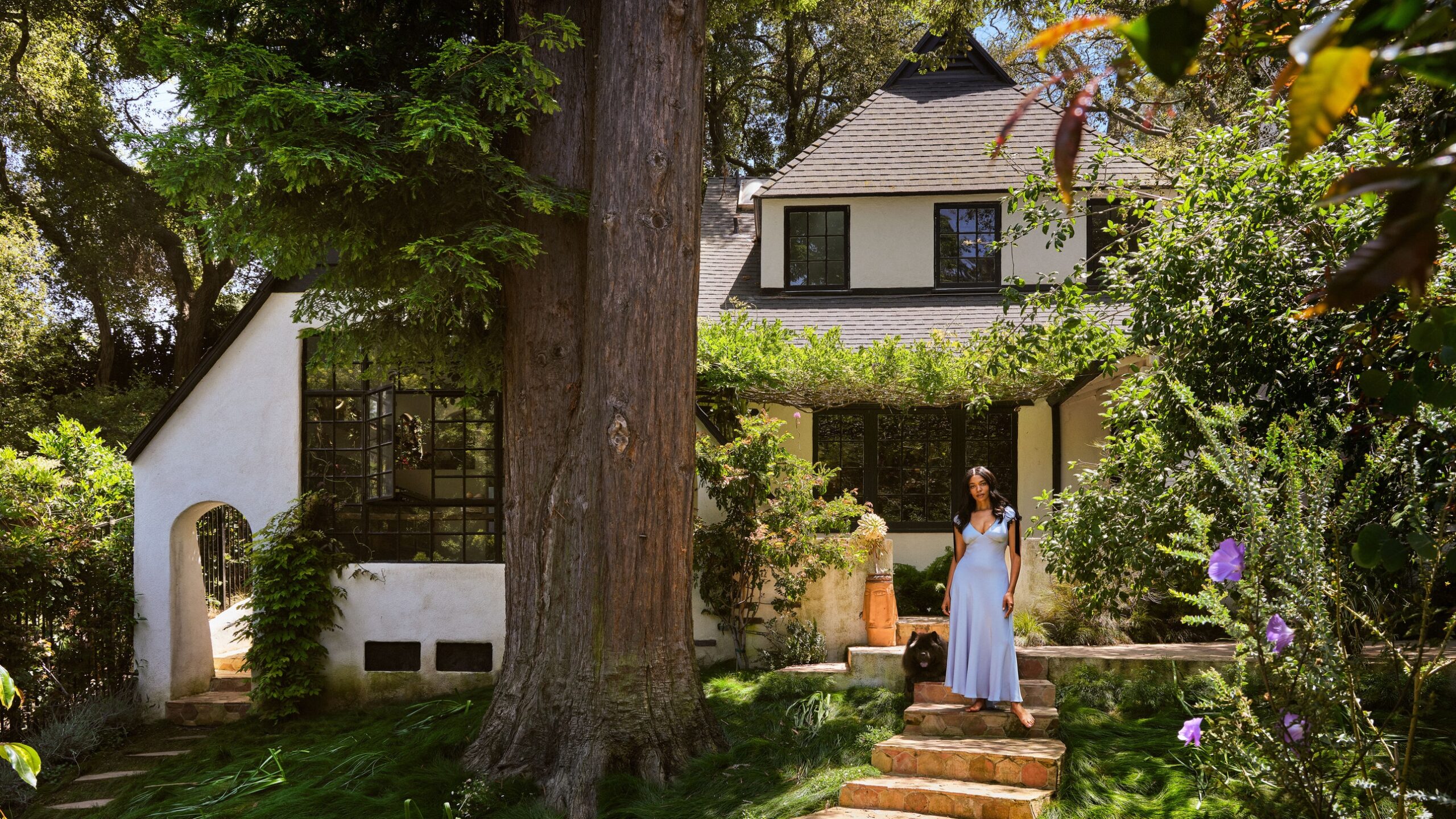 aurora james Tenga una fuerte intuición y, a menudo, da sus frutos. En julio de 2020, James, cuyos numerosos títulos incluyen diseñador de calzado, activista e inversor, se estaba preparando para hacer una oferta por la primera casa que estaba de gira en Los Ángeles. Después de revisar la casa en Zillow, programó una visita y tomó un avión desde Nueva York. Es difícil resistirse a esta dulce cabaña en Laurel Canyon con una imponente secuoya en el frente y escondida junto a un sinuoso camino boscoso. Por su parte, James dijo que sí de inmediato, a pesar de que la amiga que llevaba consigo le rogó que no apretara el gatillo tan rápido, llegando incluso a calificar el lugar como un «trágico desastre». Pero James, como siempre, confió en sus instintos y se lo creyó. «Creo que siempre veo potencial en las cosas», explica. «Simplemente vi algunos ajustes simples que podrían mejorarlo y me sentí como en casa».