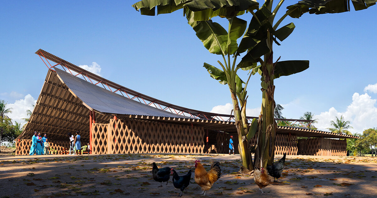 Edificio de tierra impreso en 3D en Tanzania Renderizado © Imigoproporcionado por Hassell