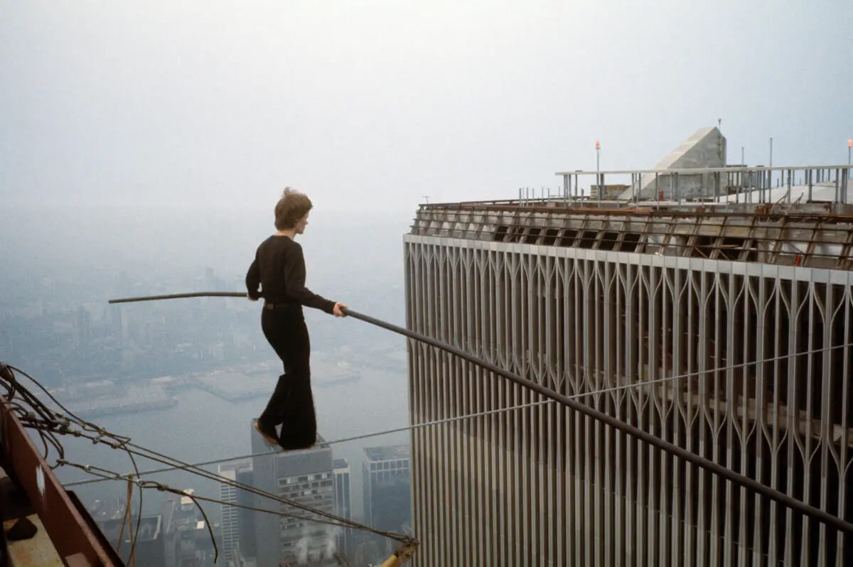 Este agosto se cumple el 50 aniversario del paseo de Philippe Petit por las Torres Gemelas de Minoru Yamasaki. Era una calurosa mañana de verano en el bajo Manhattan, artista Caminando de puntillas sobre un cable de ¾ de pulgada suspendido a 1,368 pies del suelo, cruzó los 130 pies entre dos rascacielos, no una, sino varias veces. Eso fue el 7 de agosto de 1974. Neoyorquino Observaron con gran asombro cómo Pettit caminaba de un lado a otro entre las torres, Actuación «Doblaciones de rodillas y otras acrobacias», p. informe atravesar New York Times. Todo el incidente duró unos inolvidables 45 minutos.