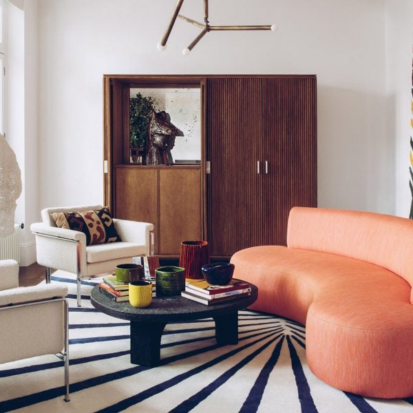 «Mientras que el color rosa anaranjado del sofá añade un toque amargo, el azul oscuro de la alfombra aporta más clasicismo al espacio», añadió la pareja.