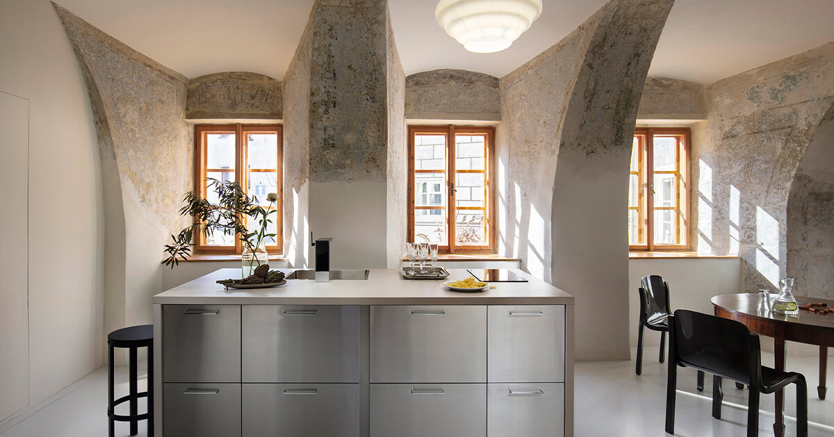 Las paredes restauradas añaden encanto histórico al apartamento boutique checo Casa Rosa