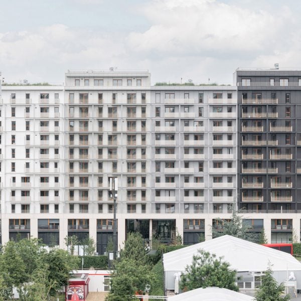 Exterior de la residencia de la Villa Olímpica de París diseñada por Triptyque