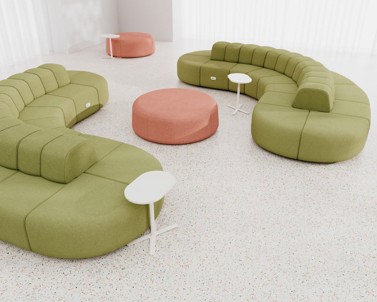islas tiffany es una versión de la silla modular Tiffany original, que presenta las mismas curvas pero en un nuevo modelo espalda con espalda. La versión actualizada consta de tres componentes: un asiento recto con respaldo, un asiento en forma de cuña con respaldo y reposabrazos. Estos elementos se pueden utilizar como una unidad o combinarse para crear varias configuraciones: un refugio en una isla en un entorno corporativo. Los usuarios pueden dar rienda suelta a su niño interior y divertirse formando un salón serpenteante de hasta 30 pies de largo o combinando los módulos con mesas de café para crear un ambiente informal en una oficina abierta. Tiffany Island presenta proporciones ergonómicas y una altura de asiento de trabajo de 18 pulgadas para admitir diferentes posturas y tipos de compromiso y brindar una comodidad óptima.