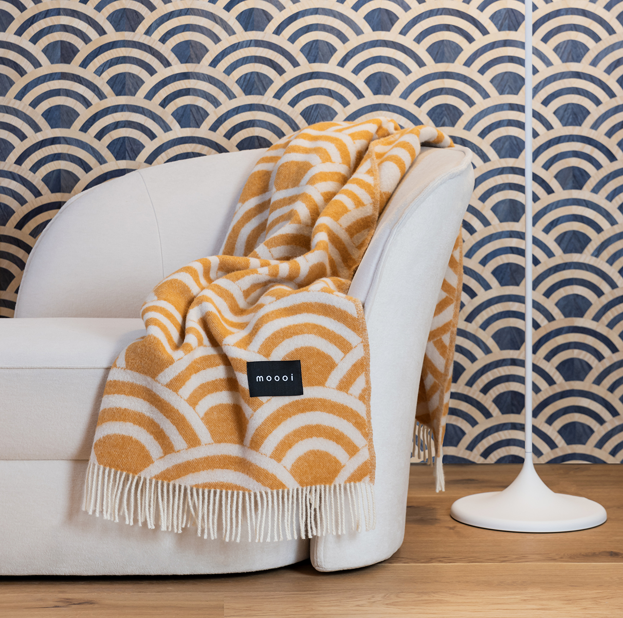 nuevo Manta de lana Moooi DE ACUERDO Casa No. 2 para mui Es otro ejemplo brillante de lo que hemos llegado a conocer y amar de la marca a lo largo de los años. Detalles exquisitos y patrones divertidos se combinan para crear una colección de mantas lujosas y caprichosas. Fabricadas con lana premium de Nueva Zelanda certificada según los más altos estándares de sostenibilidad, estas mantas llevan la «calidez y la comodidad» al siguiente nivel.