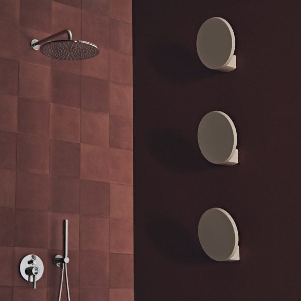 El accesorio redondo contiene un elemento calefactor que se puede instalar de forma segura en baños y habitaciones húmedas y está diseñado para calentar toallas y albornoces.