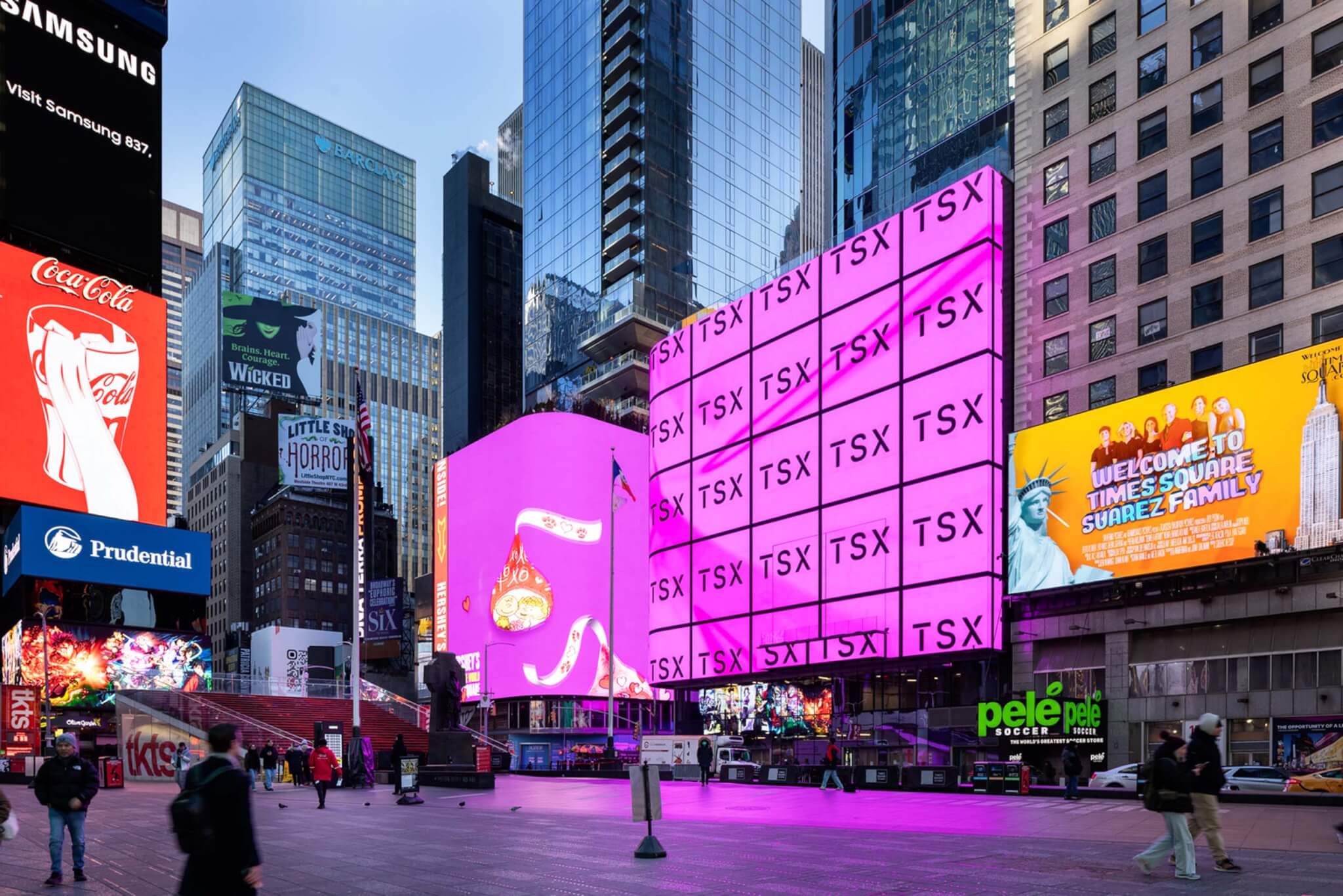 El desarrollo también alberga el TSX Stage en el tercer piso. Este lugar para espectáculos al aire libre de última generación está oculto dentro de una pantalla LED de 18,000 pies cuadrados sobre Times Square. Los artistas ingresan al balcón en voladizo a través de dos puertas integradas en pantallas LED. Las imágenes de la actuación se muestran simultáneamente en una pantalla detrás del escenario, utilizando tecnología avanzada para eliminar retrasos.