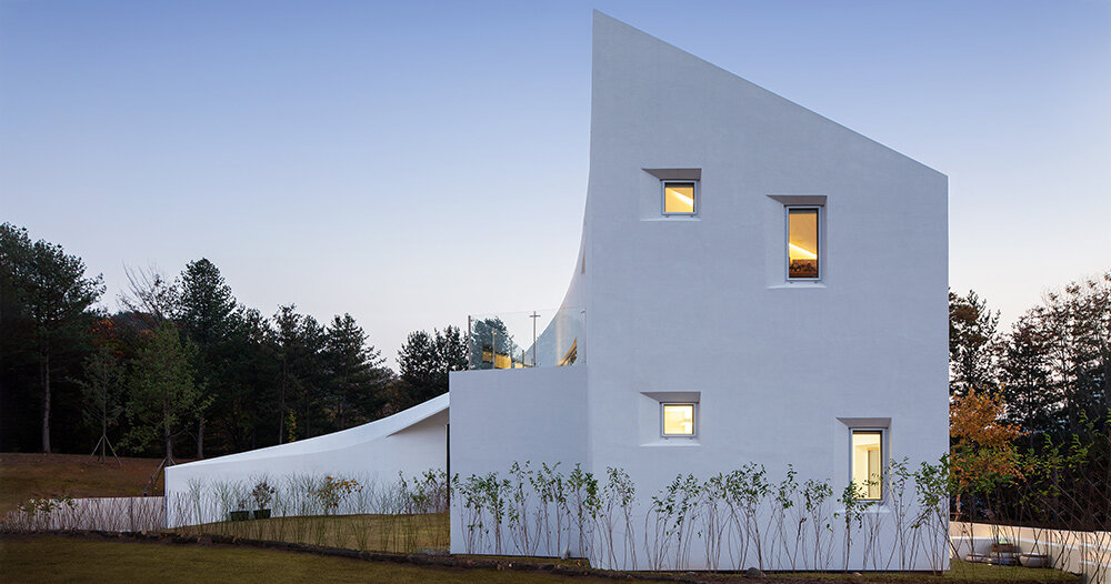 Una casa curva en Corea del Sur presenta fachadas fluidas que se extienden hacia el suelo
