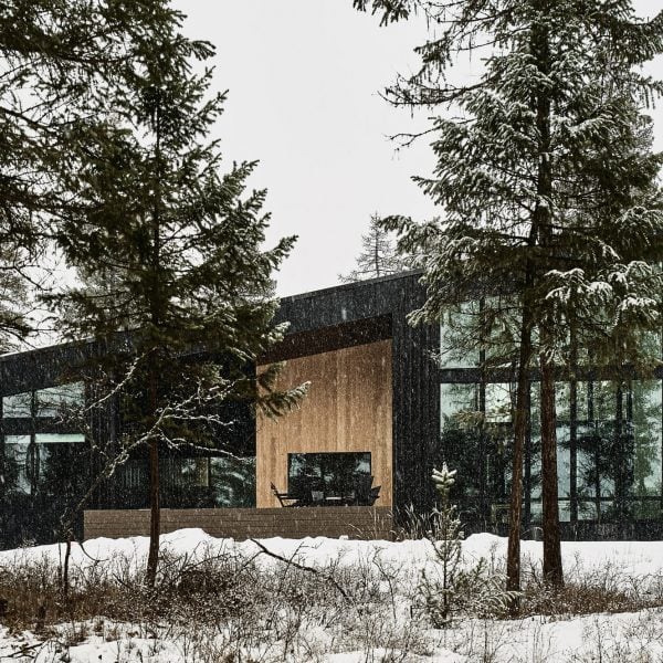estudio de arquitectura Mina Rancho Caja de sombras de la casa de vacaciones del noroeste completada Montana revestimiento en forma de ángulo negro El metal crea un «claro contraste» con el paisaje.