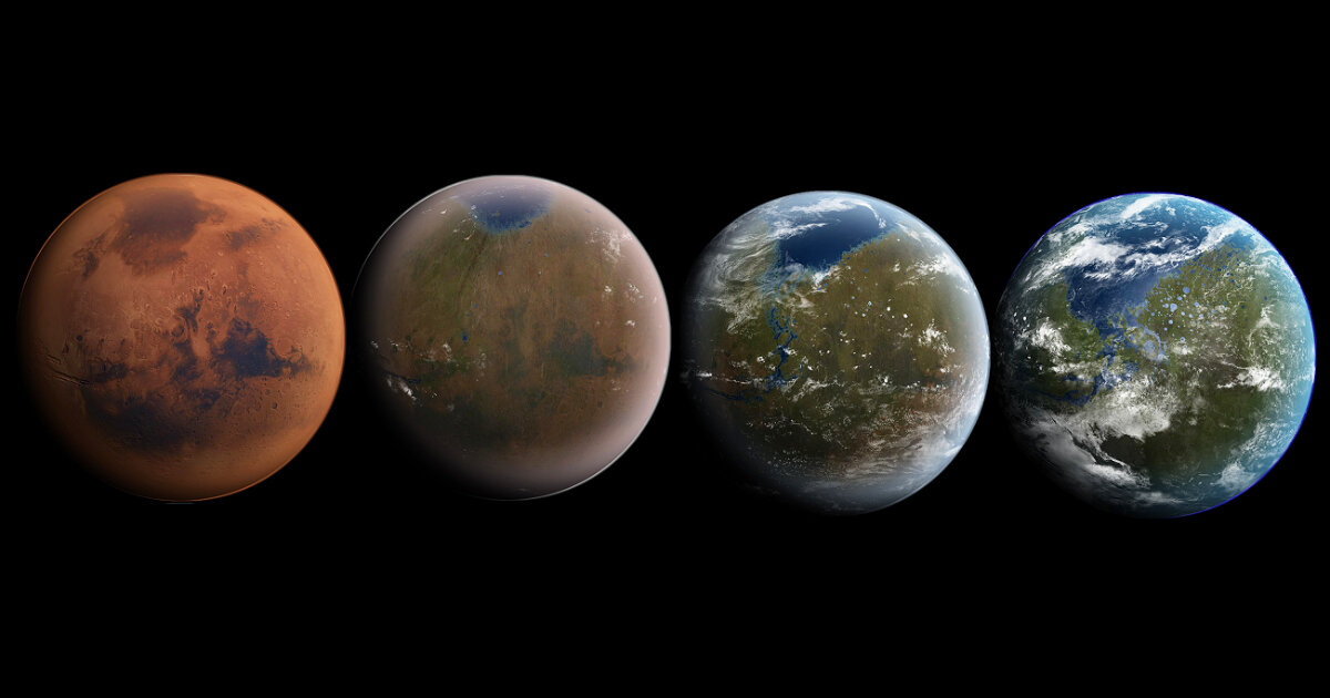Impresión artística de una etapa hipotética de terraformación de Marte | Imagen de Daein Ballard/Wikipedia, vía Northwestern University